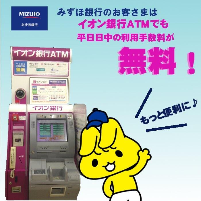 イオン銀行atmでも 平日時間内無料でご利用いただけます みずほ銀行