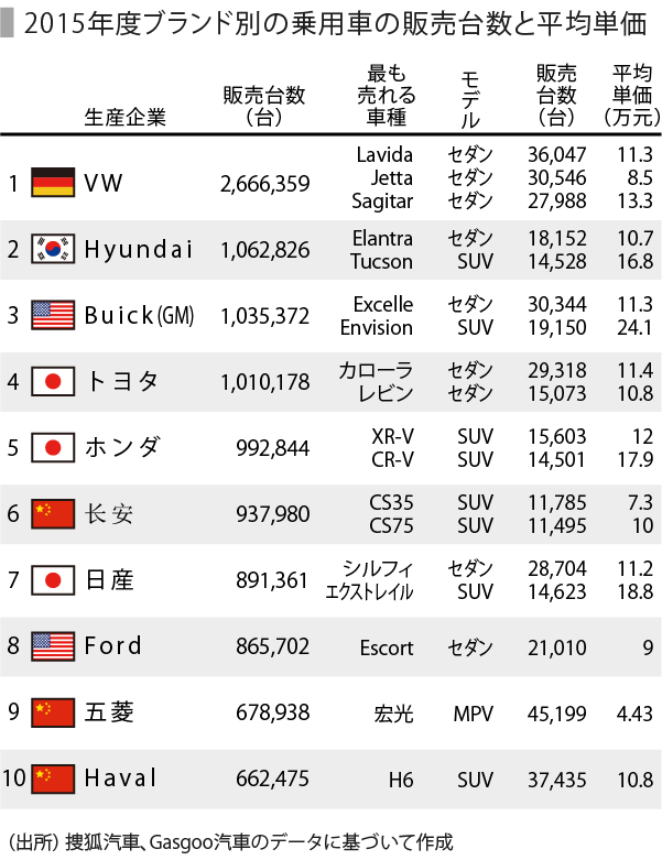 中国の自動車販売ブランド別シェアランキング 世界四季報