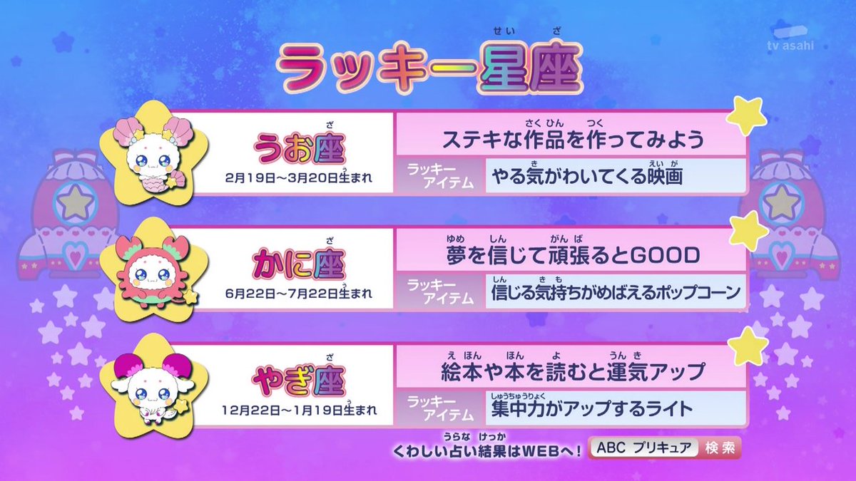 プリキュアの星座占いのラッキーアイテムがとにかく映画観ろと訴えてくる 映画プリキュア Togetter