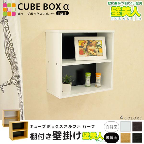 壁のダメージ最小限 ウォールラック 壁掛け キューブボックスaハーフ 木棚付き 壁美人セット 棚 壁を傷つけない Cbh Set002 Houseboat 通販 Yahoo ショッピング