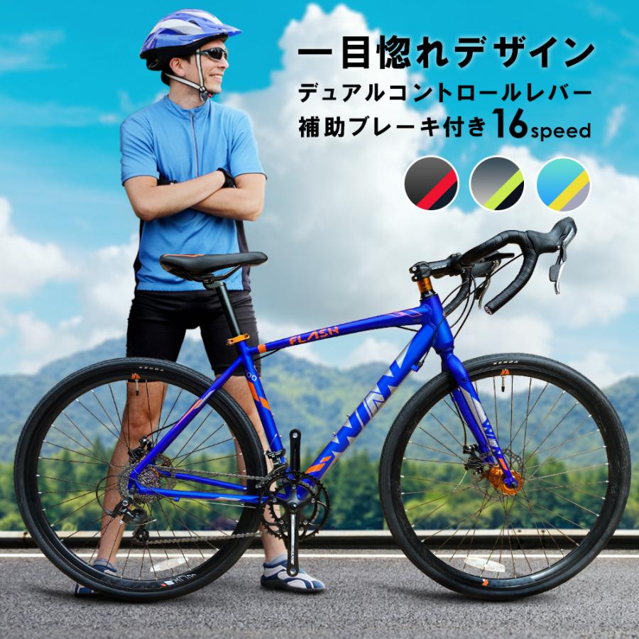 ロードバイク 自転車 軽量 速い アルミフレーム デュアルコントロール 補助ブレーキ 16段変速 型落ち 初心者 おすすめ 通勤通学 本体 700c Yj Wn Flash 自転車の一勝堂 通販 Yahoo ショッピング
